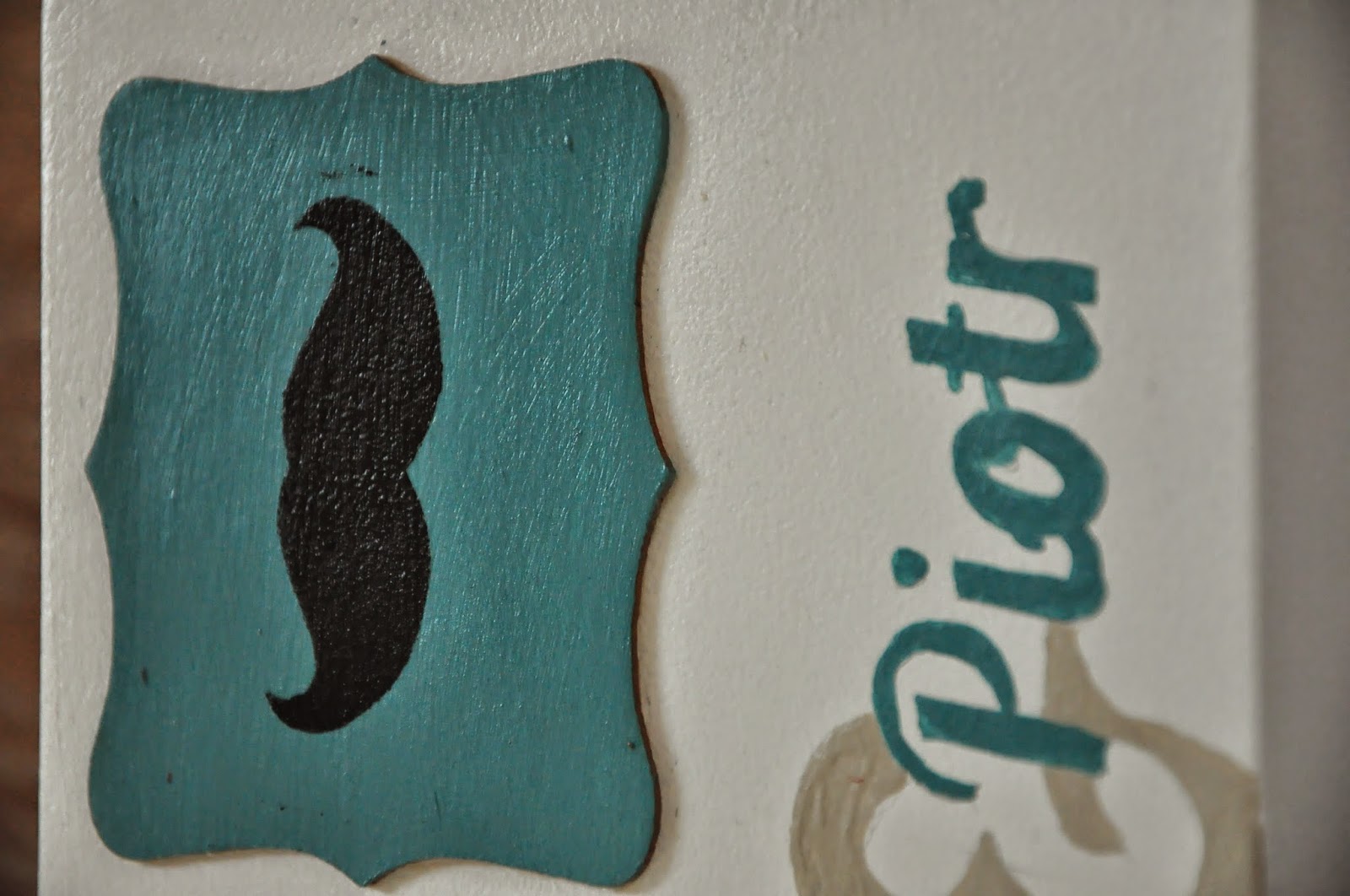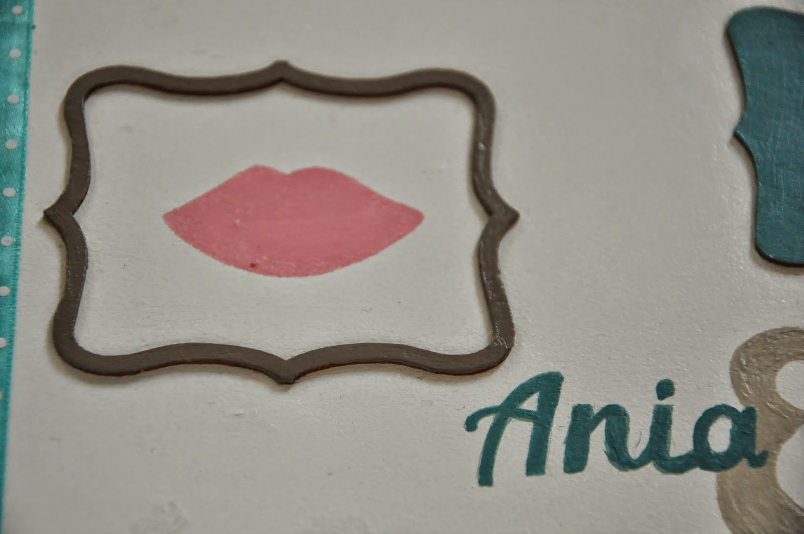 – tekturowa etykieta, kupiona w sklepie z materiałami do scrapbookingu – jej obramowanie dało ramkę dla usteczek a właściwa część tekturki – dla wąsów,