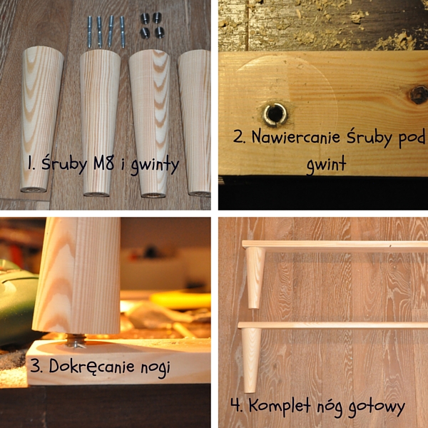 witaj! Nóżki zamówiłam u stolarza – robił mi stożki z walca o przekroju 6 cm, z sosny,