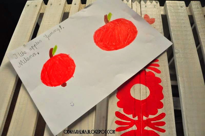 A na koniec tematyczna impresja mojej córki i jej deklaracja o jabłkach:)