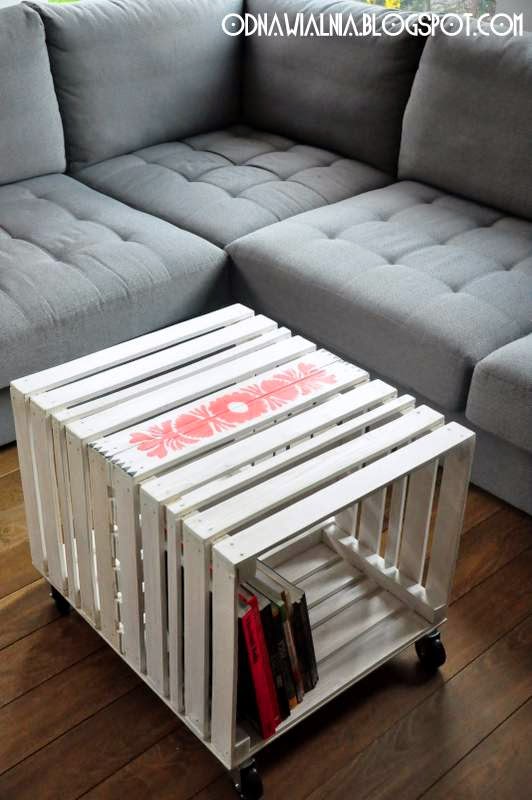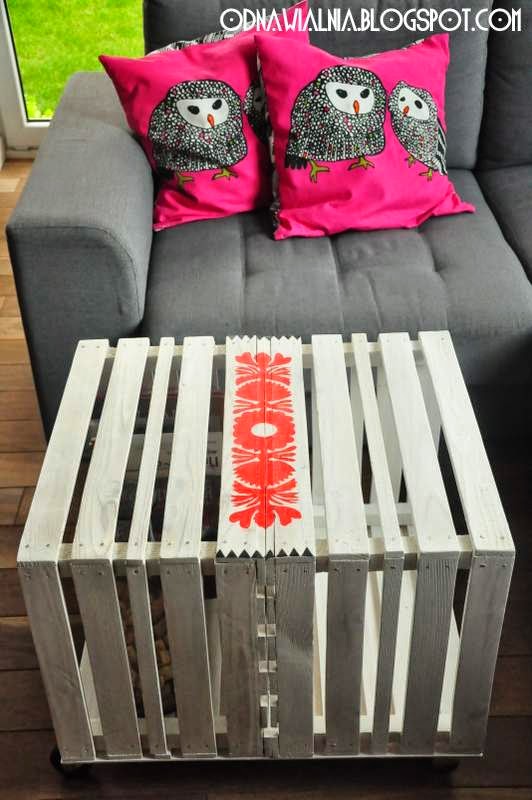 hehe zgadzam się ze skrzynki i palety są już na dobre w naszych domach ja sama mam dwa stoliki nocne ze skrzynek w sypialni:)) na czerwonch kołeczkach