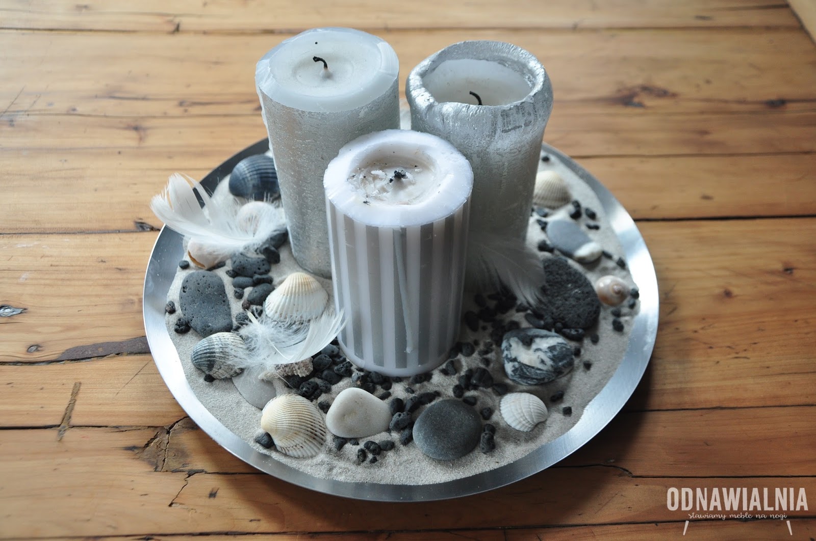Ostatni weekend wakacji, kumulacja porządków przed startem szkoły, wygrzebane z szuflad muszelki, drobny piasek przywieziony z Bornholmu i jest – szybki świecznik na jesienne wieczory.