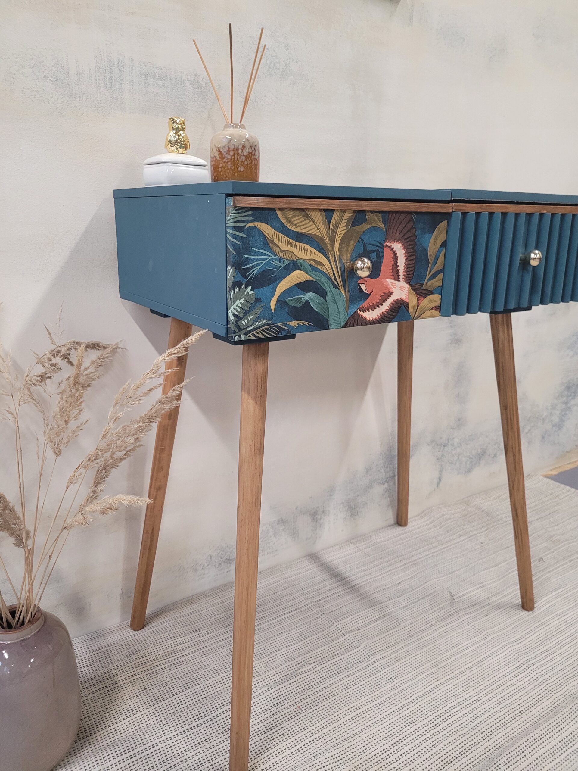 Razem z Anią preferujemy styl prosty, bez nadmiaru farby i dekoracji. Lubimy zostawić część mebla w naturalnym drewnie. Nie robimy z mebli prl dekoracyjnych komód w stylu shabby chic, sięgamy po patyny i postarzania, gdy forma mebla o to zawoła. Z nami zrobisz przeróżne dekoracje z pasów, wzory i faktury z past strukturalnych, delikatne, romantyczne stylizacje z użyciem tapet, transferów i papierów ryżowych lub morwowych, nakleisz wypukłe dekory z pyłu drzewnego, sklejki, styroduru.