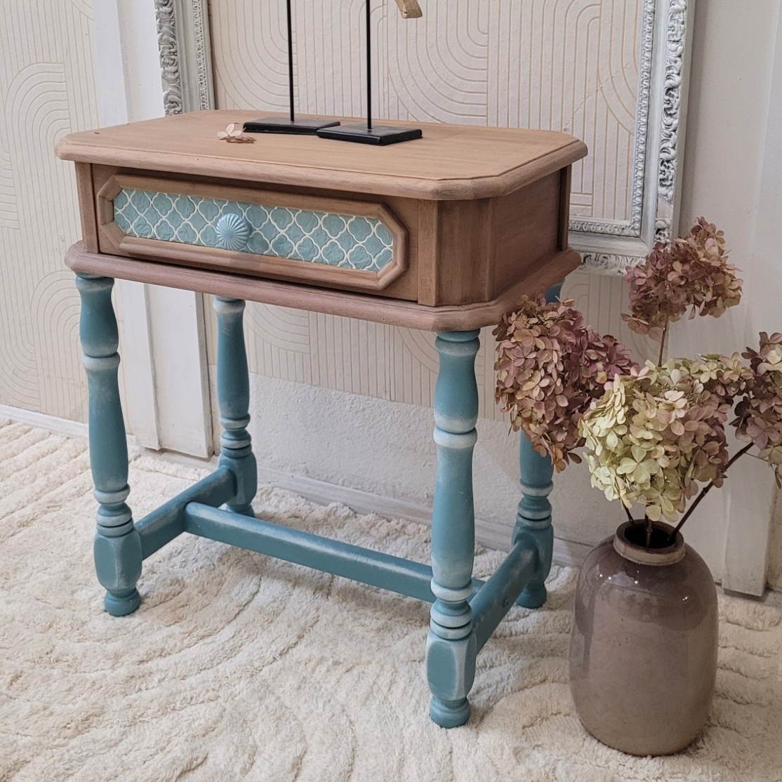 Ja preferuję styl prosty, bez nadmiaru farby i dekoracji. Lubię zostawić część mebla w naturalnym drewnie. Daria odwrotnie – szlaeństwo i bogactwo to jej misja życiowa. Niemniej cechuje nas zdrowy rozsądek i np. nie robimy z mebli prl dekoracyjnych komód w stylu shabby chic, sięgamy po patyny i postarzania, gdy forma mebla o to zawoła. Z nami zrobisz przeróżne dekoracje z pasów, wzory i faktury z past strukturalnych, delikatne, romantyczne stylizacje z użyciem tapet, transferów i papierów ryżowych lub morwowych, nakleisz wypukłe dekory z pyłu drzewnego, sklejki, styroduru.